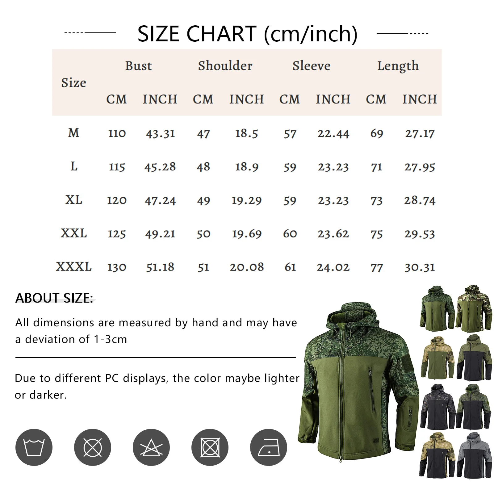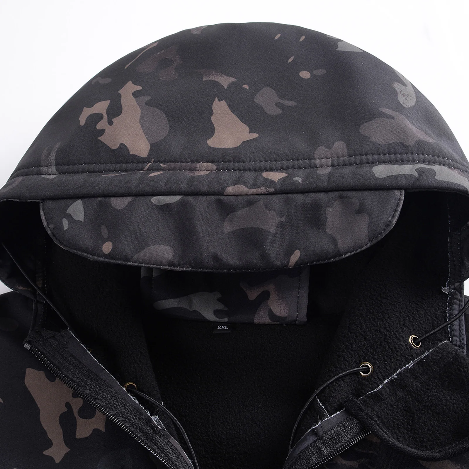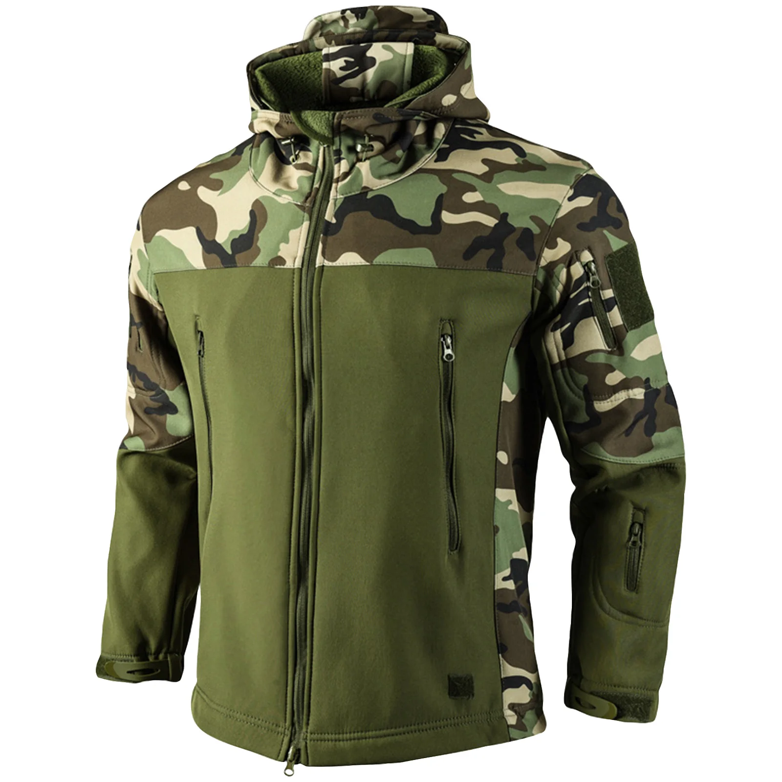 Men's Outdoor Waterproof Soft Shell Hooded Military Tactical Jackets Combat Hiking Camping Hunting Fleece Winter Autumn Coats